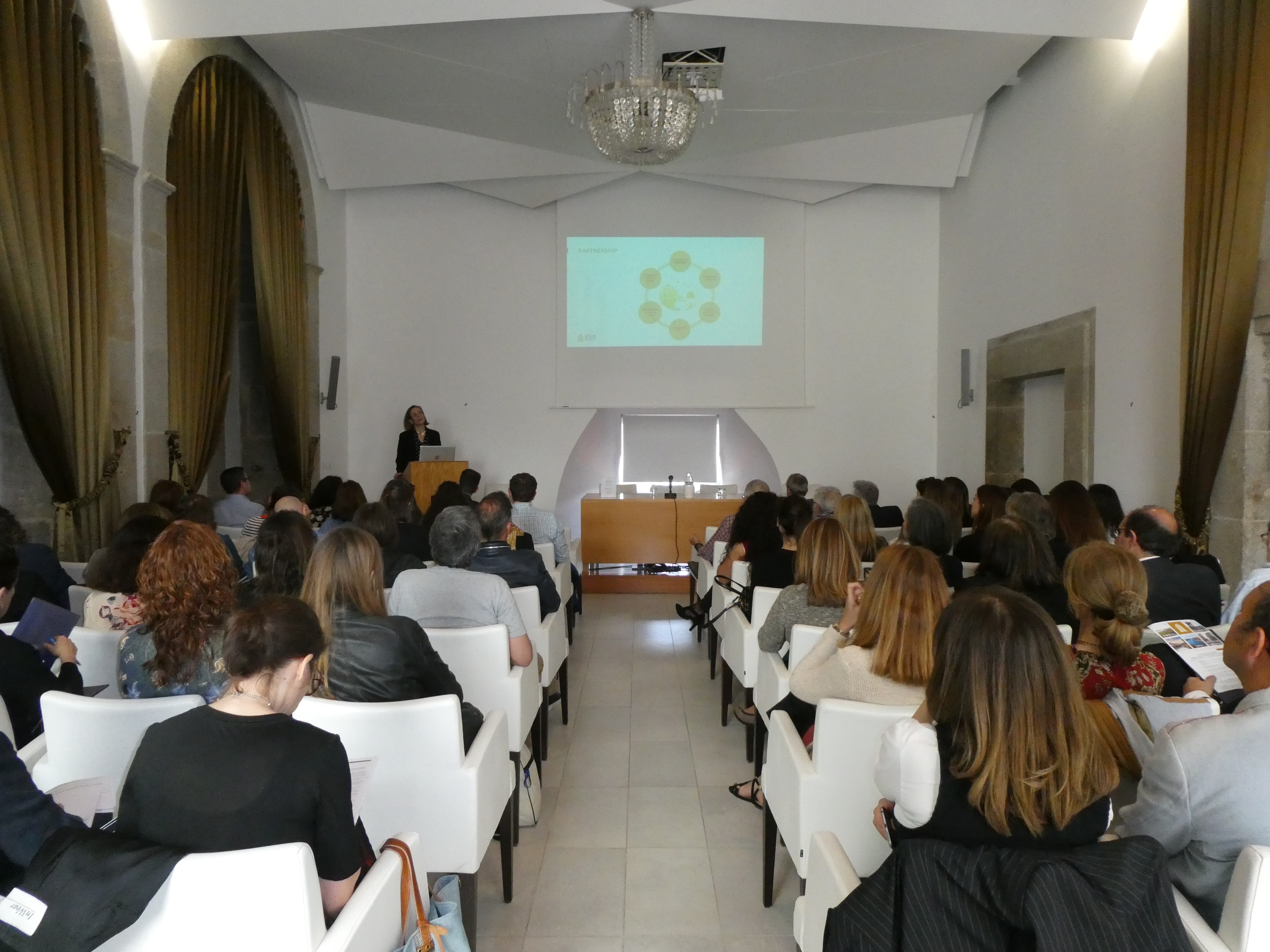 During the public session on the 22nd of May, which took place in the auditorium of the Episcopal Palace, the representatives of Santiago de Compostela presented the main results of the diagnosis of the World Heritage Sites in the Atlantic Area pointing out the methodology used in the study, as well as the identification of the common challenges, concerning the difficulty of articulation between the different entities related to the management of WHS; the need to stimulate the participation of stakeholders and citizens, and the problems affecting housing and the balance between residents and tourists, among other issues.