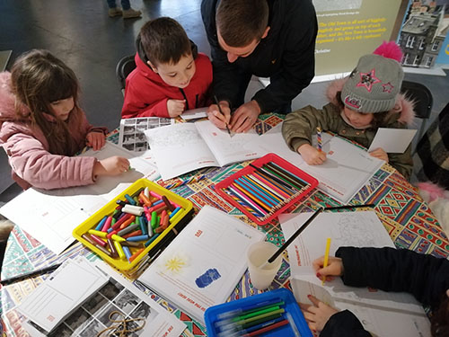 Escaping the rain and snow outside, the children and their parents enjoyed the opportunity to sit down and relax with by getting stuck in with the AtlaS.WH creative activities. It wasn’t long before memories of specific places in Edinburgh were being shared between parents, their children, and other families gathered around the table.