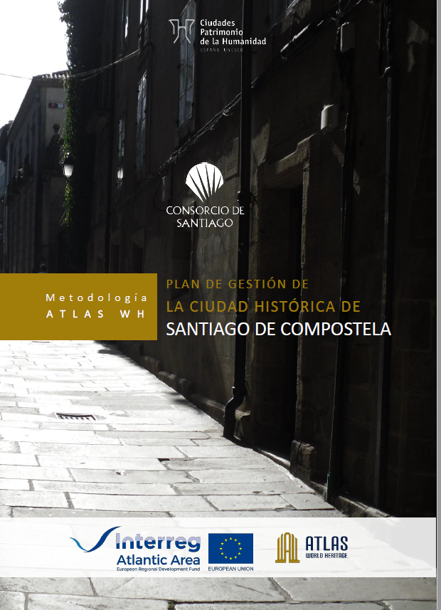 The Consortium of Santiago de Compostela has drafted the Management Plan for the historic city of Santiago de Compostela, following the AtlaS.WH methodology, approved by the partners of this project subsidized with Interreg-Atlantic Area funds, and included in the document "METHODOLOGY FOR THE DEVELOPMENT OF MANAGEMENT PLANS FOR URBAN WORLD HERITAGE SITES".